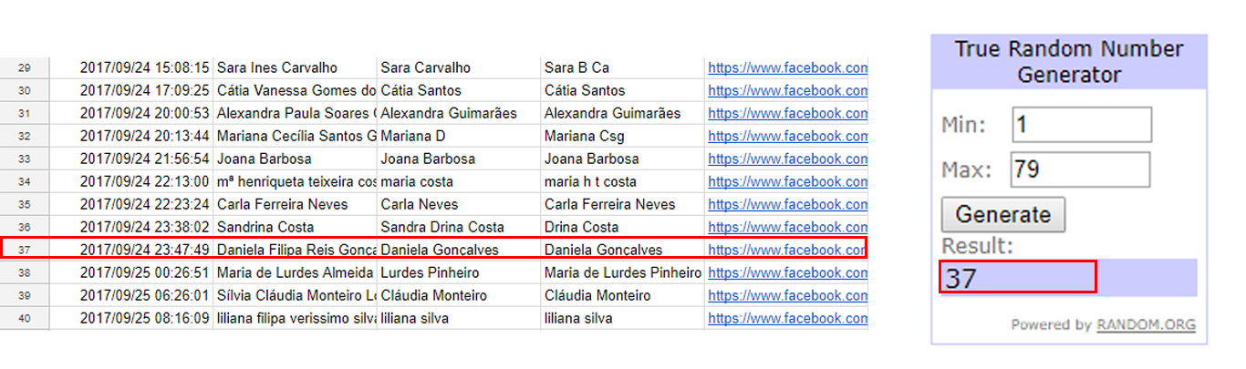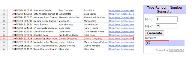 Como a vencedora foi escolhido pelo random.org mostro-vos aqui a prova de quem realmente ganhou.